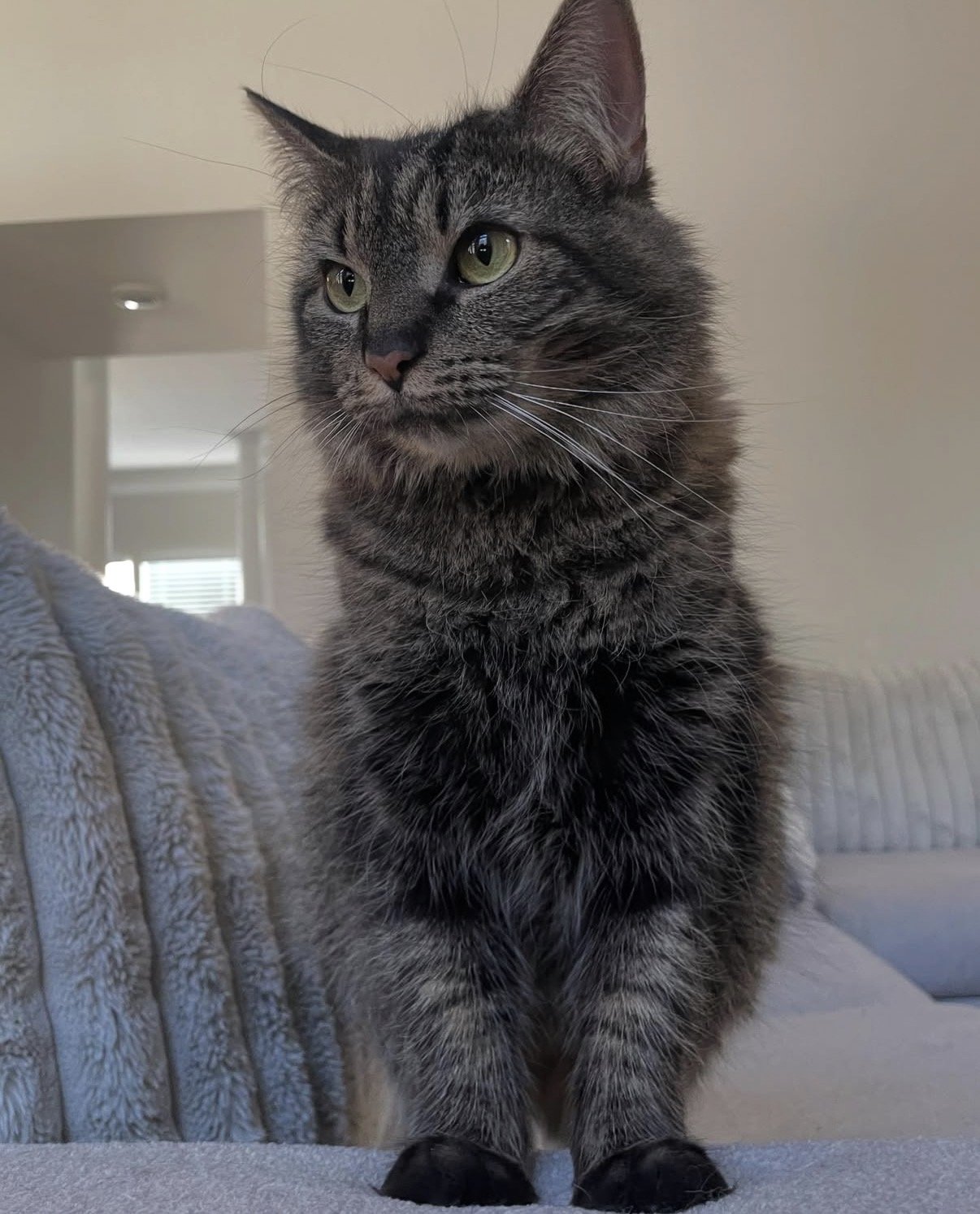 Today, she’s named Newt and lives a cozy life in Seattle, Washington with a loving family and a furry sibling that is also FeLV positive.